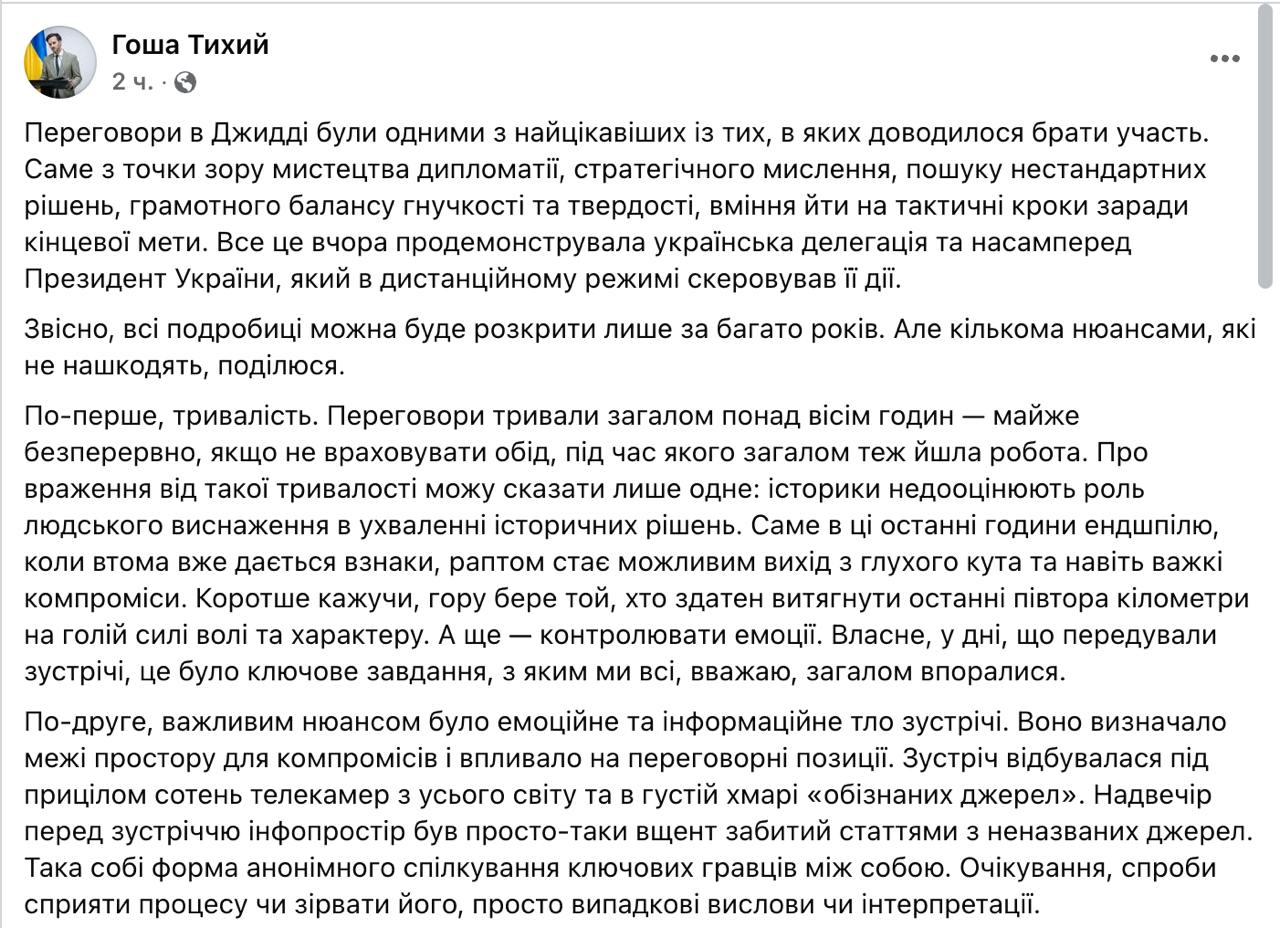 Тихий описал, как проходили переговоры. Фото: Facebook