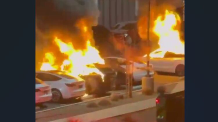 Пылающие авто Tesla в Лас-Вегасе. Скриншот видео
