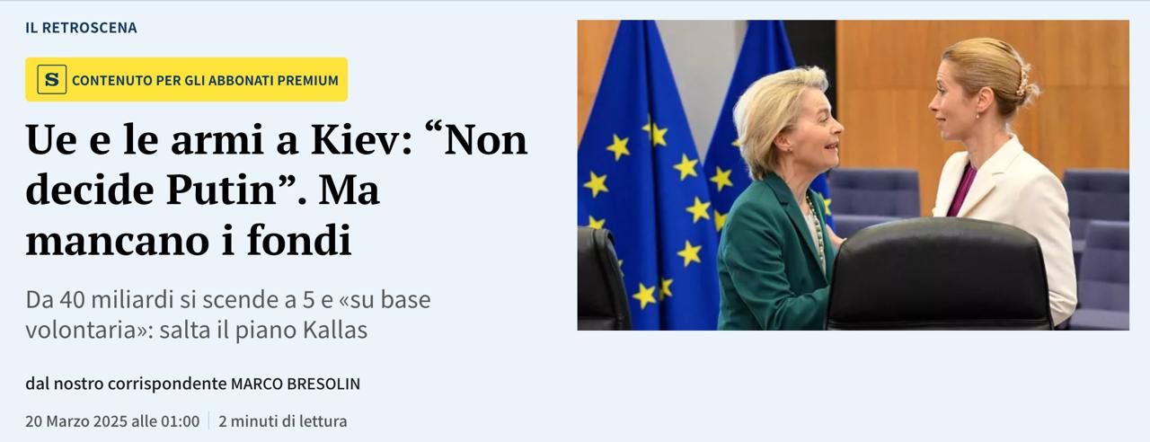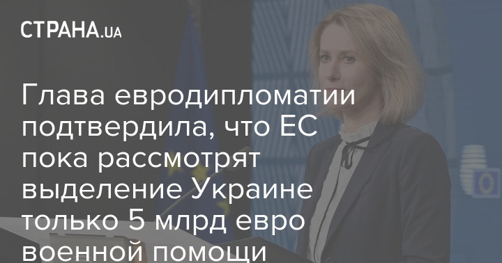 Верховный представитель ЕС по иностранным делам и политике безопасности Кая Каллас подтвердила, что на саммите Евросоюза пока рассмотрят выделение Украине только 5 млрд евро военной помощи, а не 40 млрд, как она предлагала изначально.