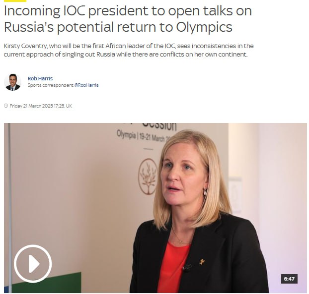 В интервью Sky News преемница Томаса Баха отметила, что видит несогласованность в текущем подходе, при котором Россия подвергается изоляции, в то время как в Африке тоже идут вооружённые конфликты.