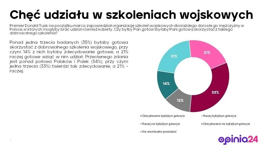 Как сказано в статье RMF FM, война в Украине вызвала в Польше дискуссии о военной подготовке населения. В середине марта премьер-министр Дональд Туск заявил, что в 2027 году Польша сможет провести военную подготовку 100 000 солдат и волонтеров. План обучения должен быть готов уже к концу марта.