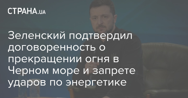 Зеленский подтвердил договоренность о прекращении огня в Черном море и запрете ударов по энергетике