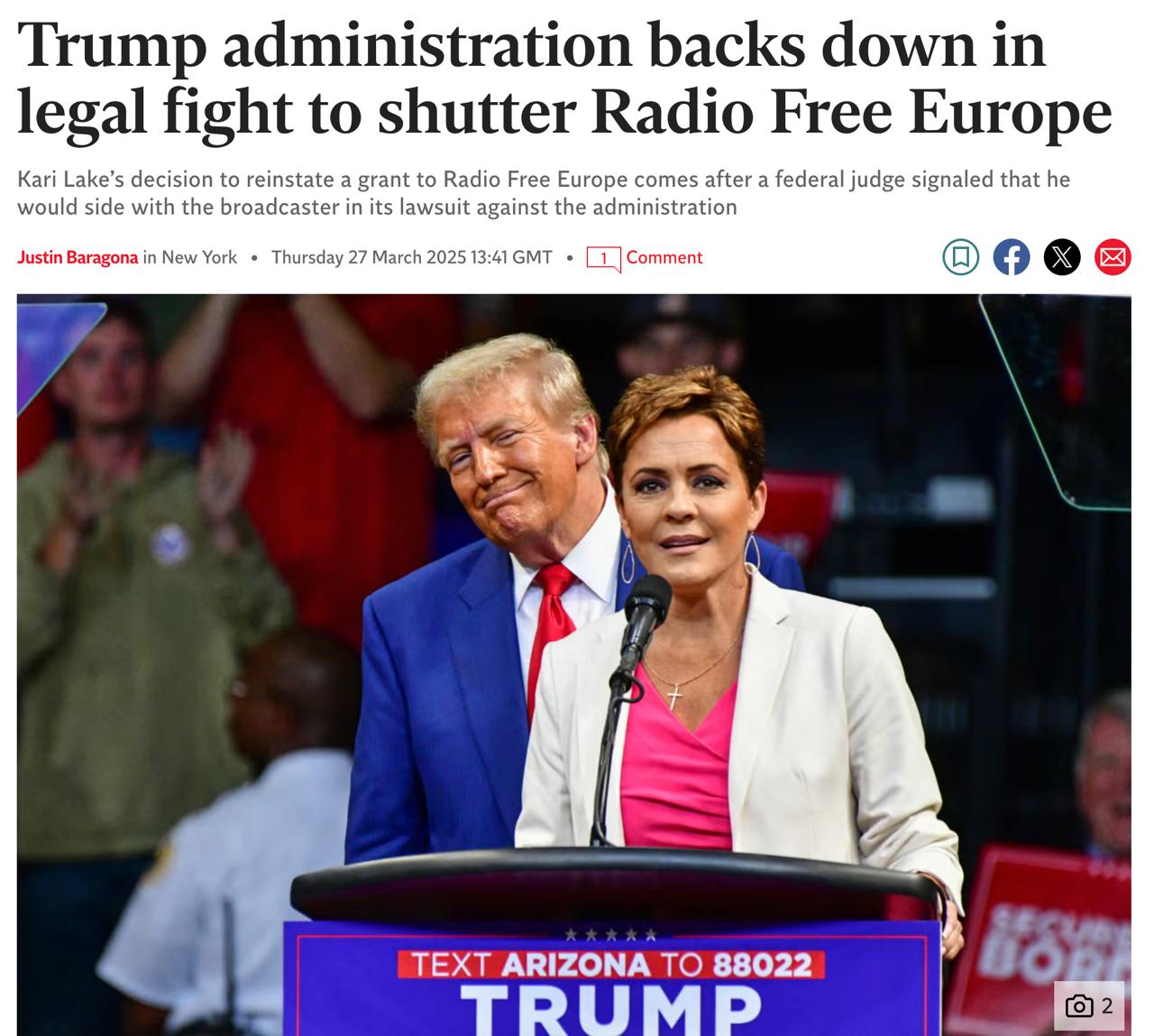 Вчера "Радио Свобода" сообщило, что подало в суд на USAGM и его должностных лиц Кари Лейк и Виктора Моралеса, в котором указывалось, что  финансирование его деятельности осуществляется Конгрессом и является "уставной функцией" USAGM. Федеральный окружной суд в Вашингтоне удовлетворил это ходатайство корпорации. Судья Ройс Ламберт пришел к выводу, что исполнение этого решения нанесло бы "непоправимый ущерб" "Радио Свобода".