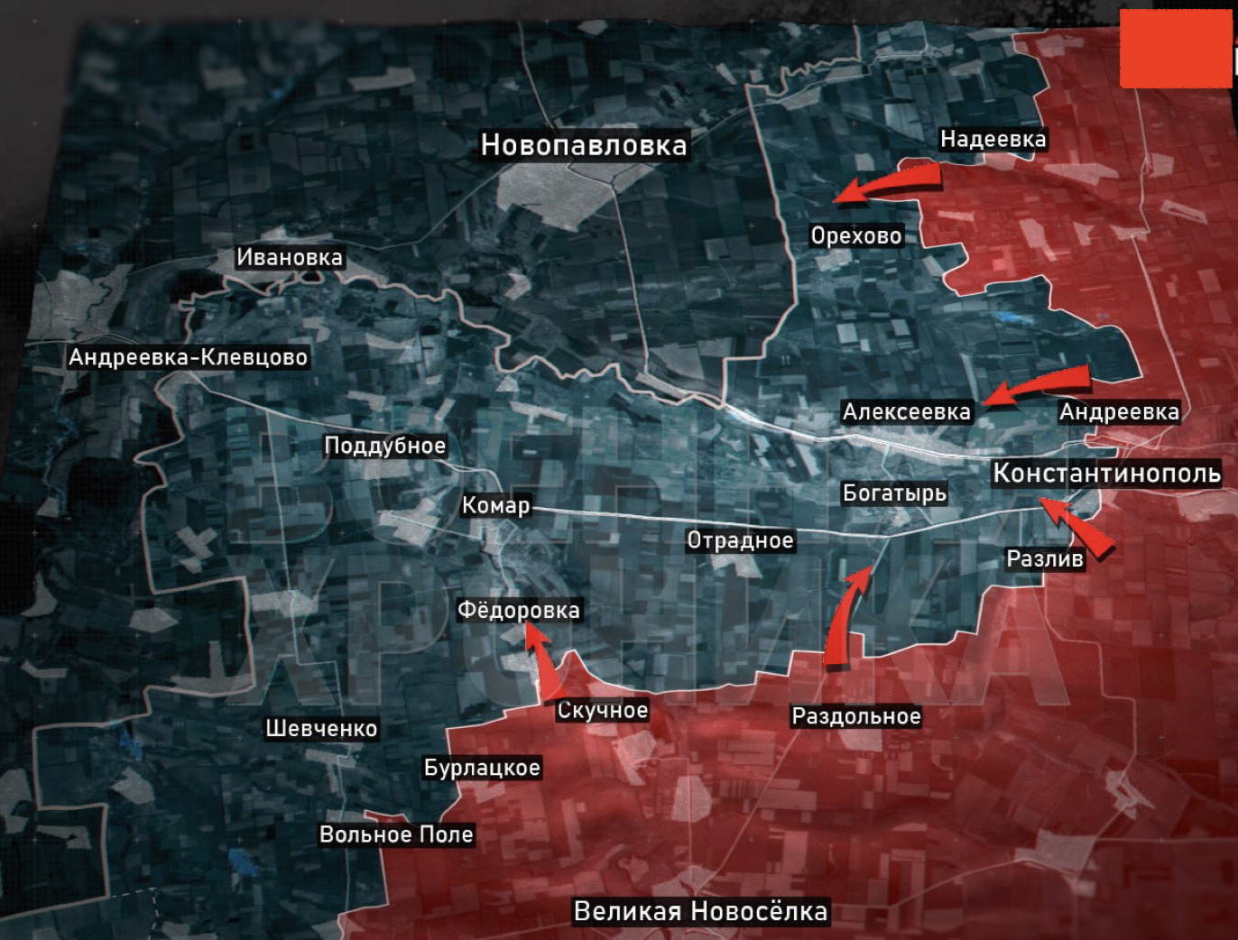 Российские паблики пишут, что после захвата Разлива (который, по их данным, еще полностью не взят), их войска могут как атаковать "в лоб" на запад вдоль трассы на Запорожье, так и начать обходной маневр на север (о чем писал и украинский обозреватель Мирошников).