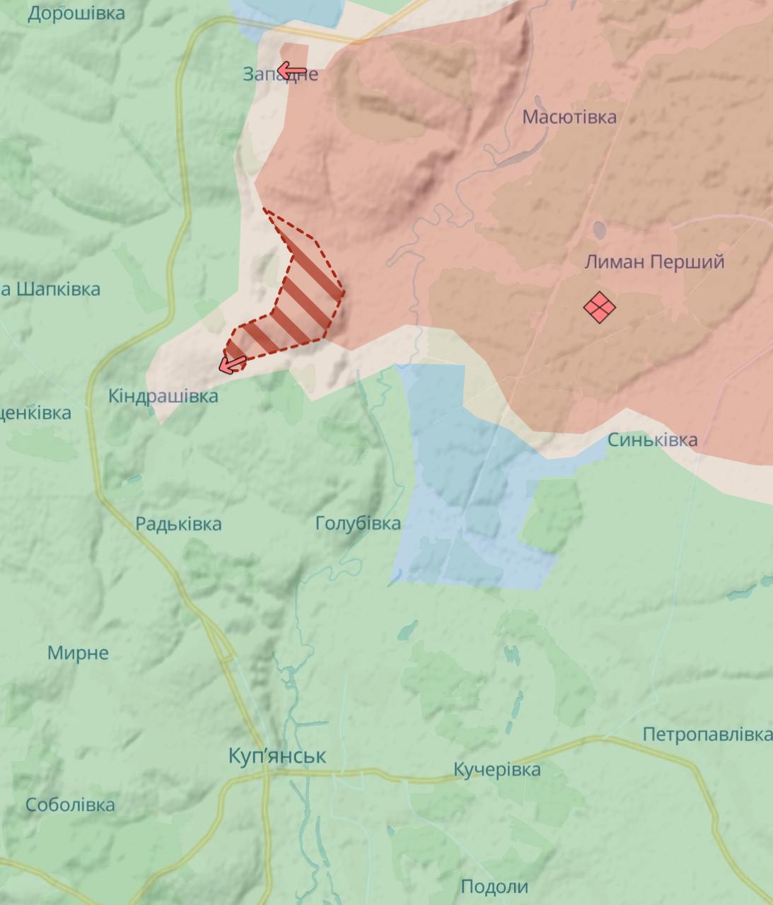Также россияне продвинулись к северу от Купянска Харьковской области и двигаются в сторону трассы около Пантелеймоновки, что юго-западнее Нью-Йорка.