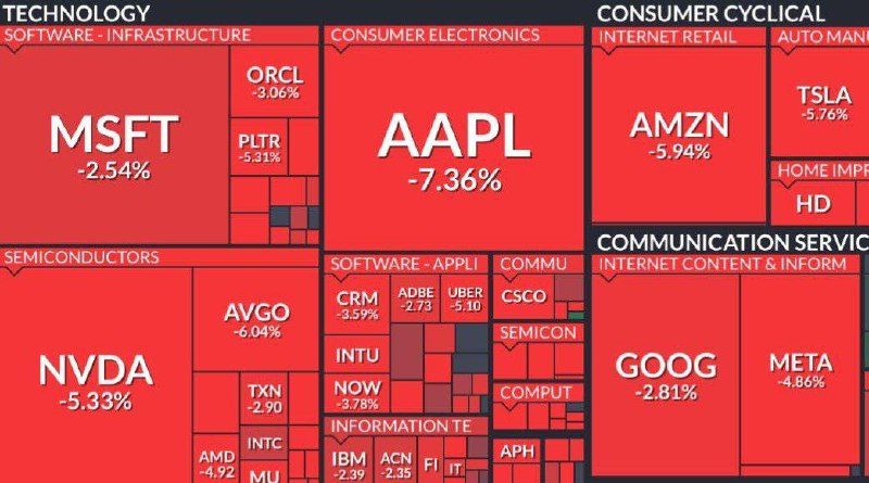 3. Падают акции американских компаний в технологическом секторе - фондовый рынок потерял около 2 триллионов долларов.