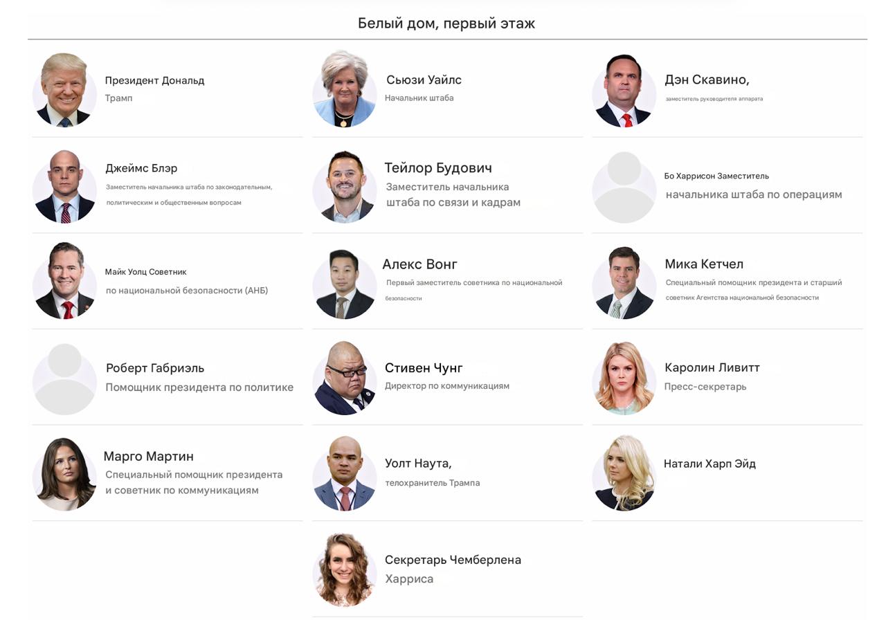 К такому выводу приходит CNN, который опубликовал схему расположения членов администрации Трампа в Белом доме и пытается сделать вывод, кто из них ближе всего к республиканцу.