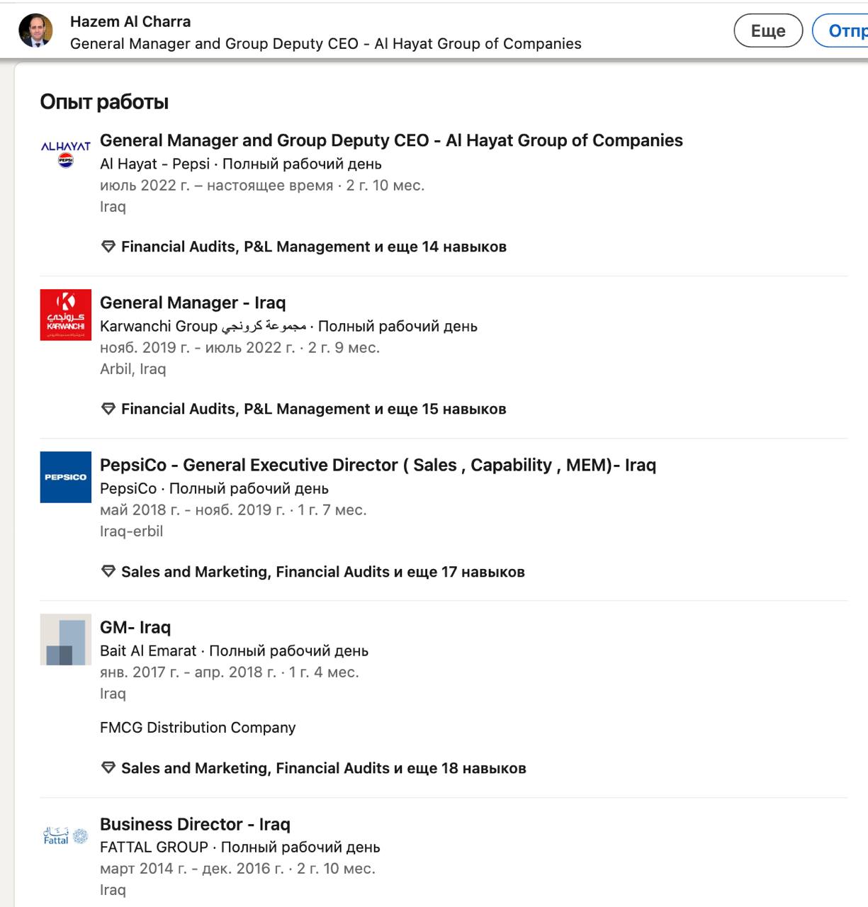 Много лет он был директором по развитию в представительствах компании PepsiCo в Ираке и Сирии. С 2022 года он занимал должность генерального директора al-Hayat - Pepsi Group (компания по производству напитков в Ираке), что указано и в его профиле LinkedIn.