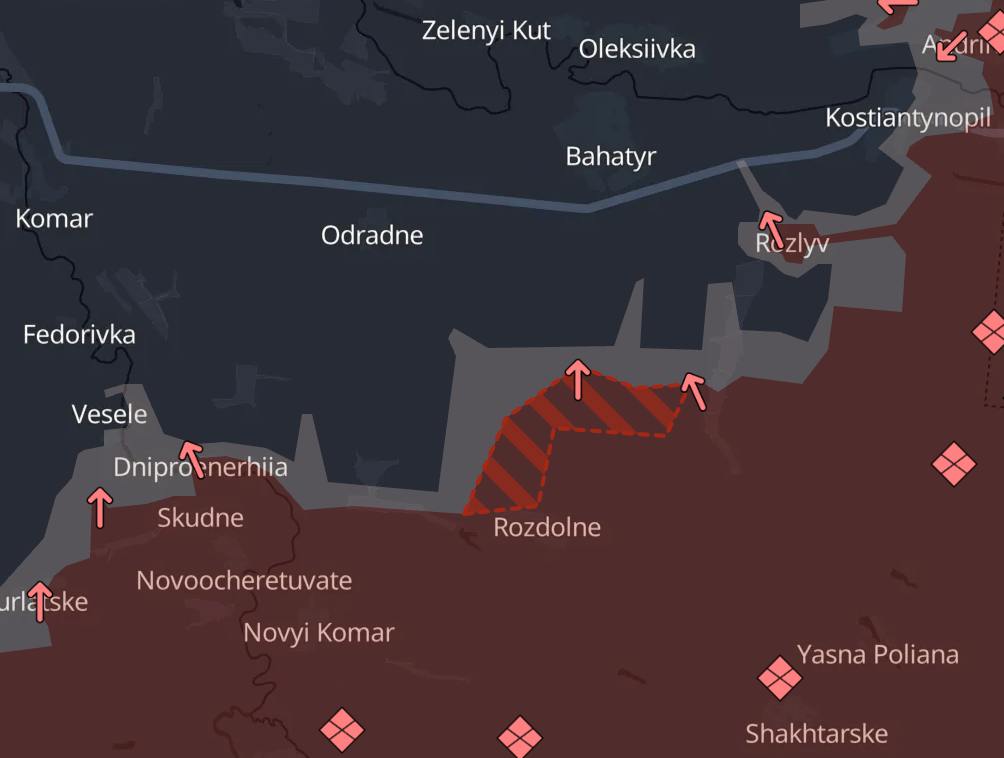 А также в сторону Днепропетровском области в районе Котляровки, где продвижение уже идёт несколько дней подряд.