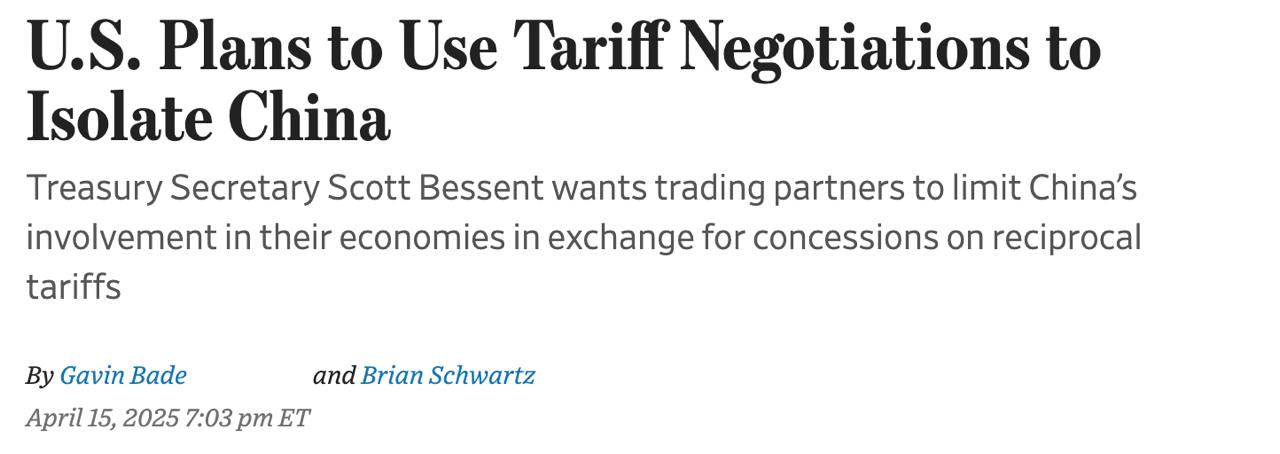 Между тем The Wall Street Journal со ссылкой на источники написал, что Дональд Трамп хочет убедить более 70 стран ограничить сотрудничество с Китаем в обмен на американские уступки по пошлинам. Американцы хотят попросить эти страны не покупать дешевые китайские товары, не переправлять им американские товары и не позволять регистрировать китайские компании для обхода пошлин.