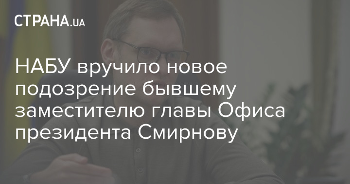 Национальное антикоррупционное бюро Украины (НАБУ) вручило новое подозрение бывшему заместителю главы Офиса президента Андрею Смирнову.
