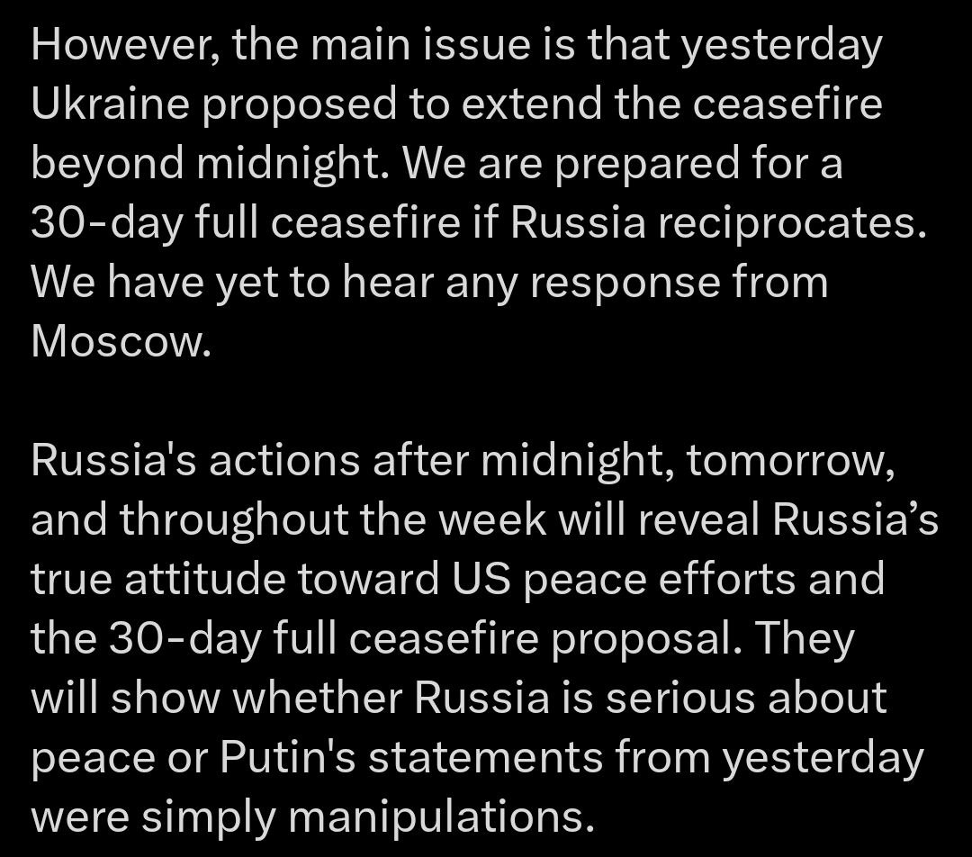 Напомним, Зеленский предложил России сначала продлить перемирие после Пасхи, затем сузил это предложение до моратория на дальнобойные удары.