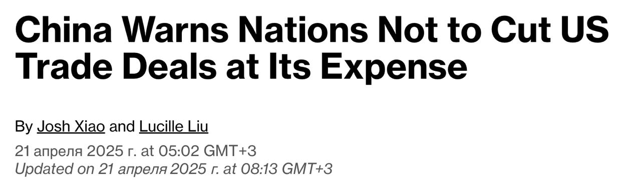 "Важно отметить, что Китай категорически против любых сделок, которые наносят ущерб его интересам. В случае таких действий Китай не останется в стороне и примет адекватные контрмеры. У Китая есть решимость и ресурсы для защиты своих интересов", — говорится в заявлении.