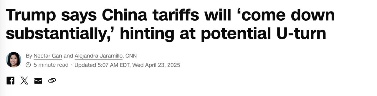 Таким образом американский лидер в Овальном кабинете прокомментировал высказывание министра финансов США Скотта Бессента о высоких тарифных ставках между США и Китаем, которые фактически наложили эмбарго на торговлю между экономиками, сообщает CNN.
