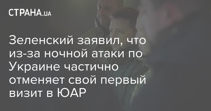 Президент Владимир Зеленский сообщил, что из-за ночной атаки по инфраструктуре Украины частично отменяет свой первый визит в Южно-Африканскую Республику(ЮАР).