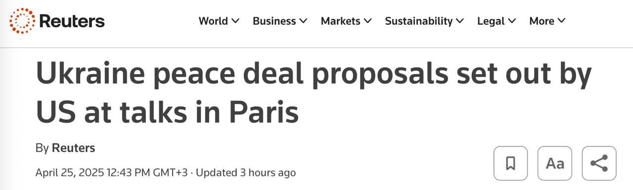 15:44 Reuters публикует полный текст мирного плана Трампа, который был представлен на встрече в Париже.