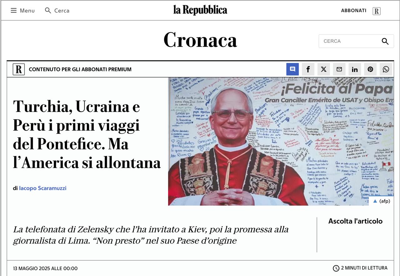 После этого украинские телеграм-каналы со ссылкой на материал La Repubblica написали, что новый понтифик приедет в Украину. На самом деле в статье издания лишь было сказано, что клирика в Украину пригласил Зеленский, но не говорилось о его согласии на визит.