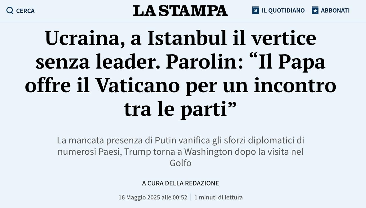 После того как Владимир Путин не явился на мирные переговоры в Турции, которые он сам и предложил, Ватикан назвал их результат "трагическим".