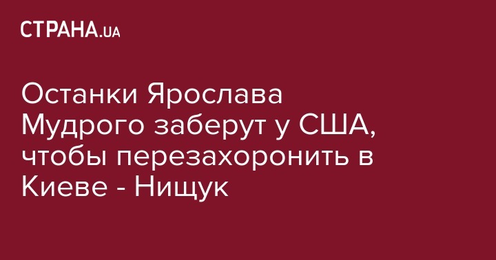 Останки Ярослава Мудрого, которые по некоторым данным сейчас находятся на территории США, могут быть перезахоронены в Киеве. Об этом в эфире "Эспрессо" заявил министр культуры Украины Евгений Нищук.