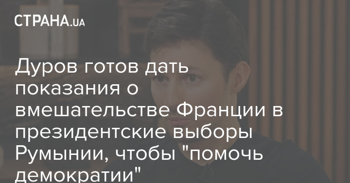 Основатель мессенджера Телеграм Павел Дуров готов поехать в Румынию, чтобы дать показания о вмешательстве французской разведки в президентские выборы этой страны.