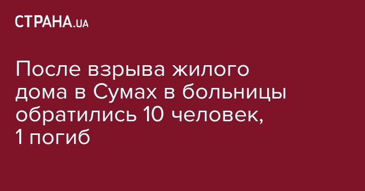 После взрыва жилого дома в Сумах в больницы обратились 10 человек, 1 погиб