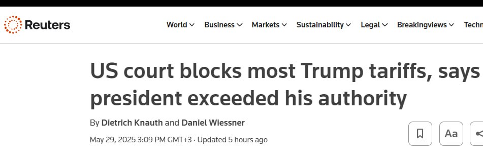 В среду Федеральный суд США по делам международной торговли заблокировал реализацию решения Трампа на установление пошлин на импорт, тоже обосновав это превышением президентских полномочий.