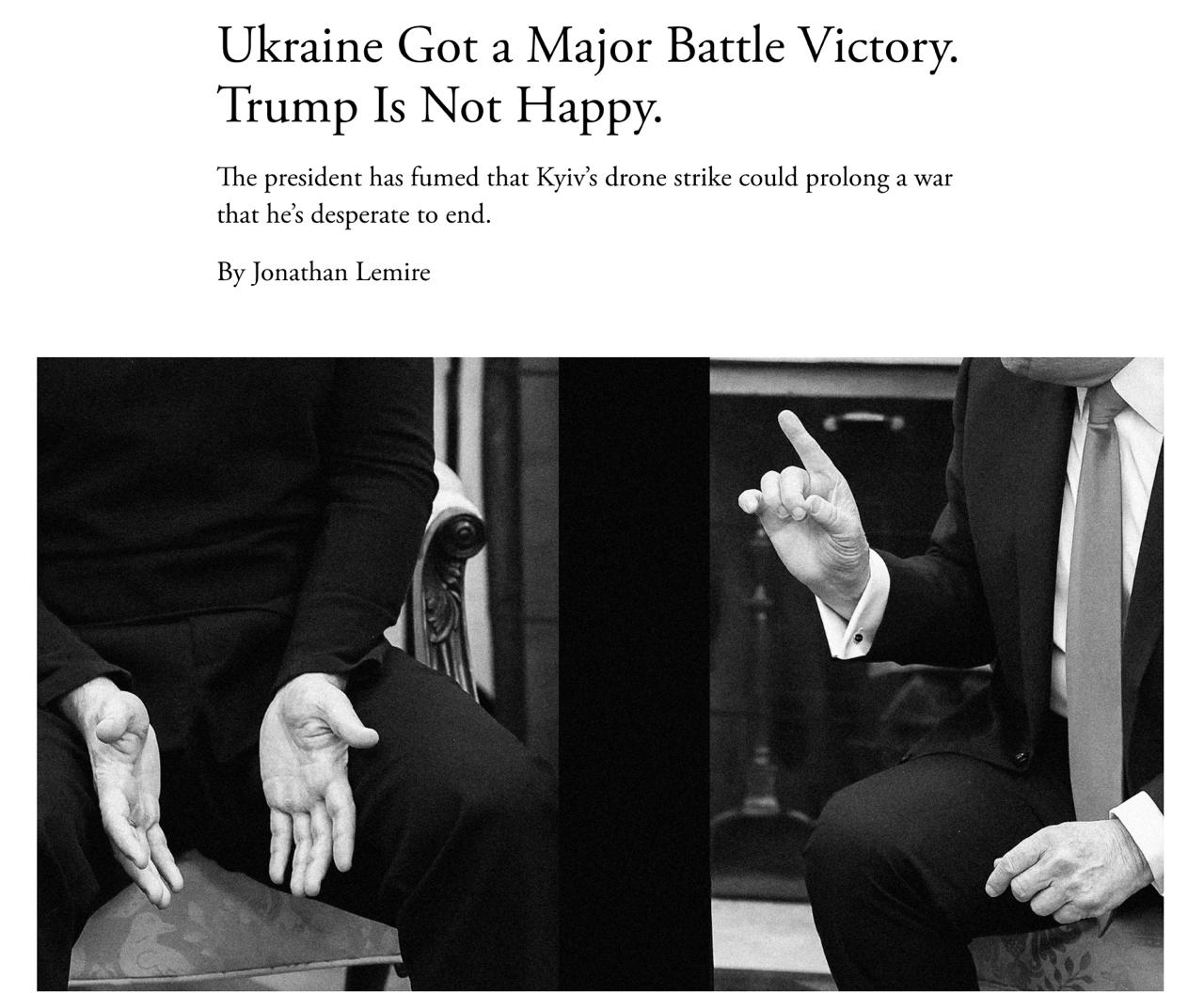 "Трамп был впечатлен дерзостью ударов, но считает, что Зеленский должен был сосредоточиться на переговорах между Украиной и Россией в Стамбуле", - добавляет издание.