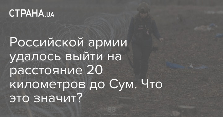 Российской армии удалось выйти на расстояние 20 километров до Сум. Это означает, что до города уже могут начать добивать FPV-дроны, сообщает DeepState.