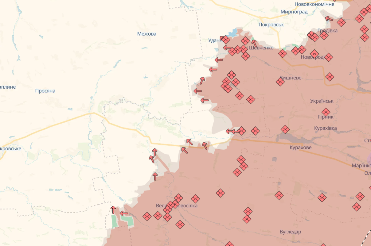 Украина этого не подтверждает. На карте DeepState россияне в Днепропетровскую область не зашли, но фронт уже находится в непосредственной близости от ее границ.