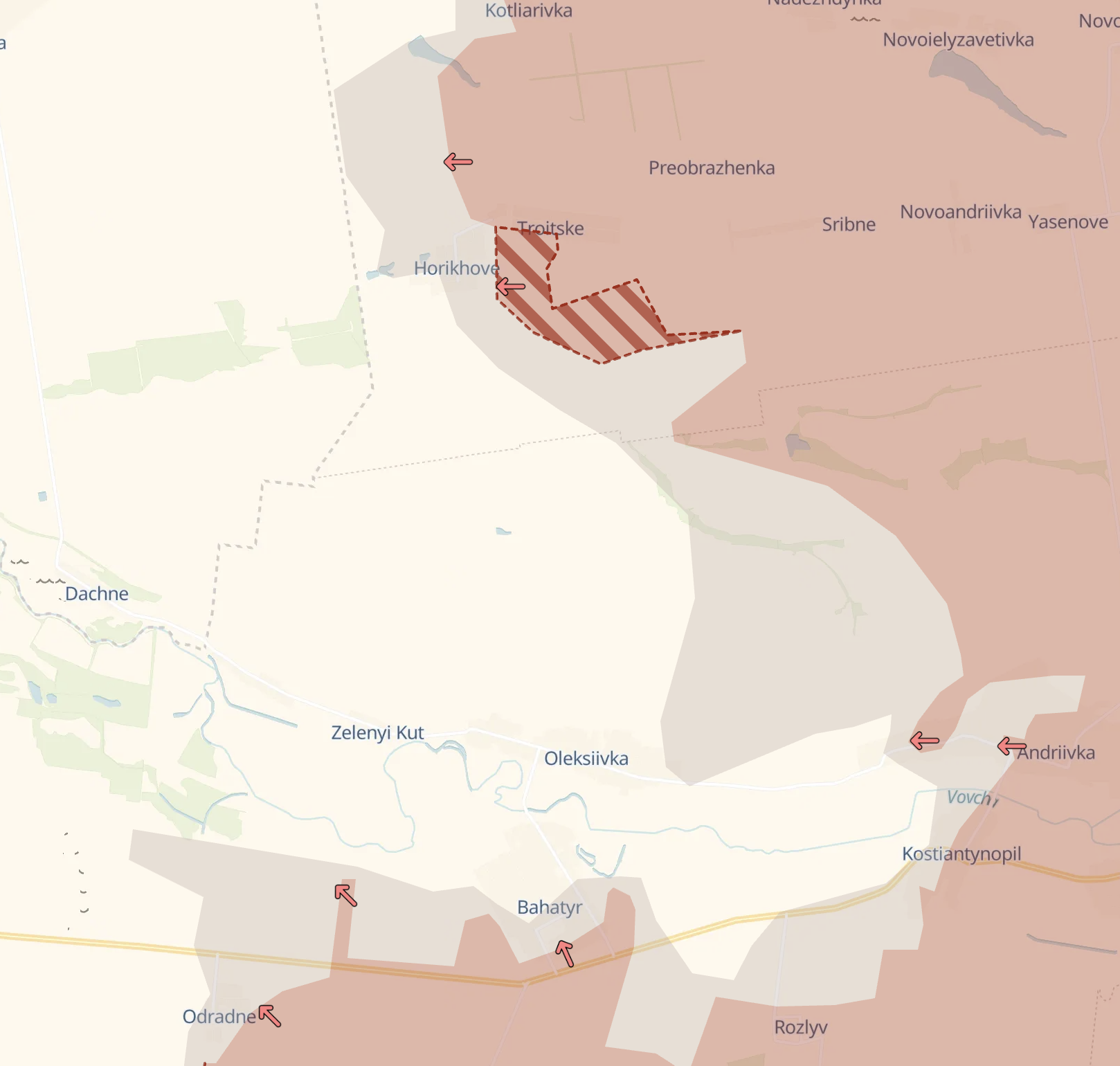 Но DS, как следует из карты выше, не подтверждает приближения россиян к Новоукраинке. На украинской карте весь приграничный участок под контролем ВСУ.