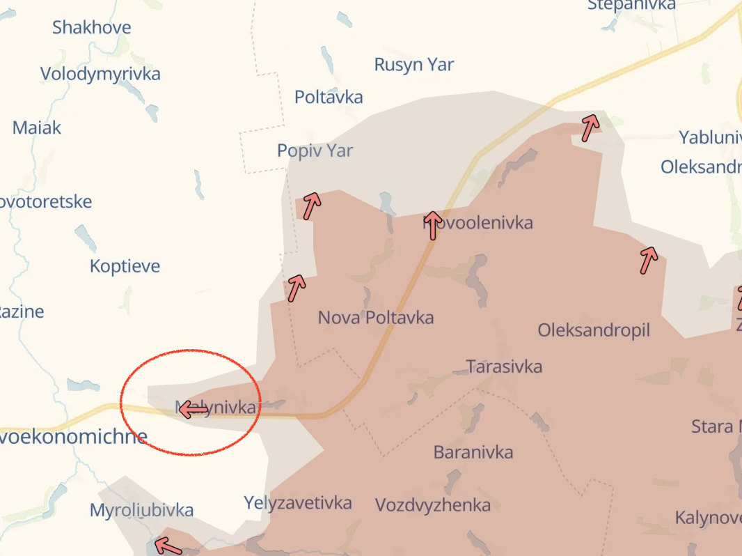 Также украинский военный паблик пишет о продвижении россиян в направлении Малиновки Запорожской области - уже на Гуляйпольском направлении.