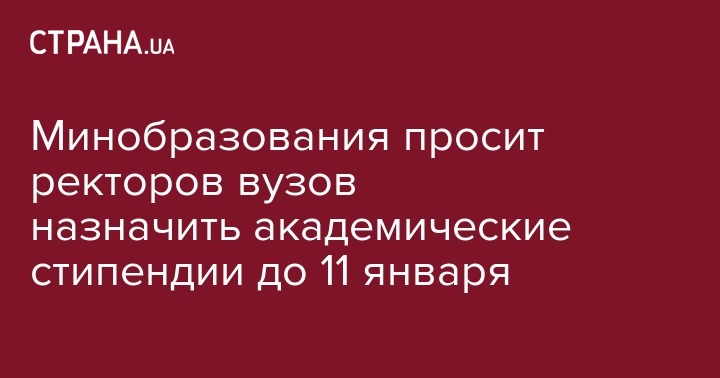 Министерство образования и науки Украины разослало ректорам украинских вузов III и IV уровней аккредитации письма с требованием о начислении академических стипендий студентам до 11 января. Об этом говорится на сайте ведомства