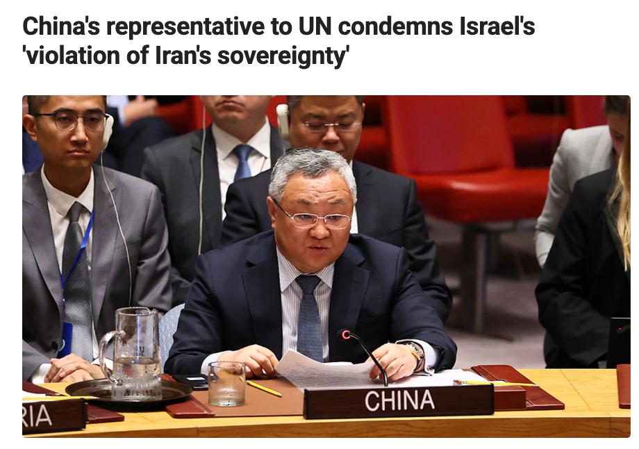 Пекин осуждает "нарушения Израилем суверенитета, безопасности и территориальной целостности Ирана" и "выступает против усиления и расширения конфликтов".