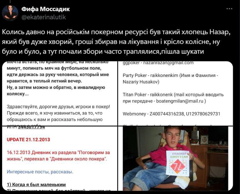 В Украине разгорелся скандал вокруг 31-летнего львовского активиста с редким генетическим заболеванием Назария Гусакова, который годами собирал миллионы на лечение. Его заподозрили в непрозрачном использовании донатов, покерных ставках и схемах обогащения через криптокошельки.