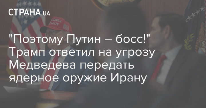 Президент США Дональд Трамп прокомментировал слова зампреда Совбеза РФ Дмитрия Медведева о возможности передачи ядерного оружия Ирану.