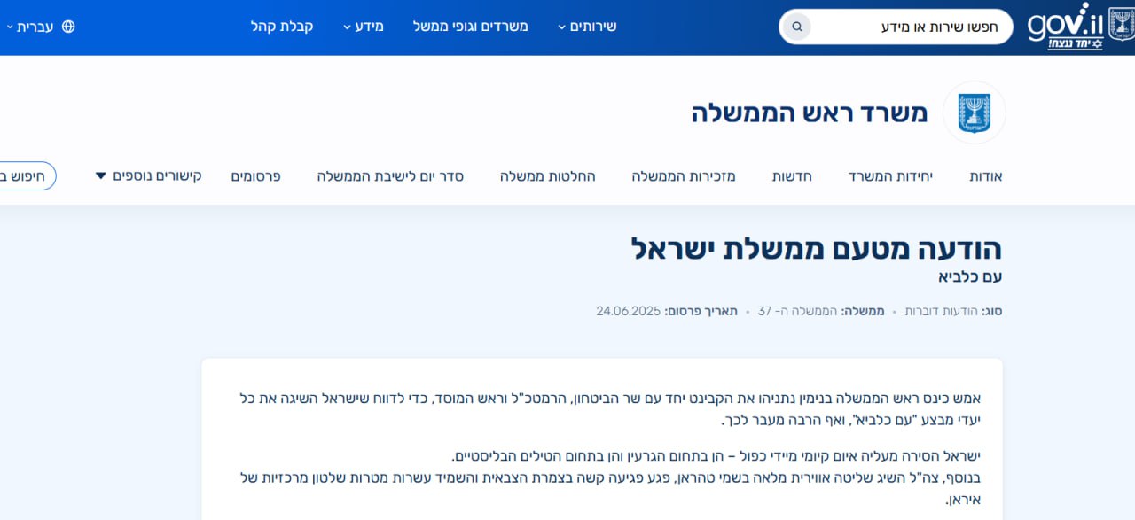 Как сказано в пресс-релизе, вчера вечером премьер-министр страны Биньямин Нетаньяху созвал кабинет министров вместе с министром обороны, начальником Генштаба и главой "Моссада", чтобы доложить, что "Израиль достиг всех целей операции и даже больше".