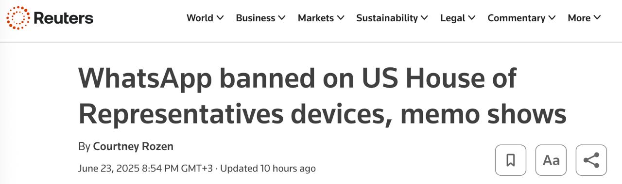 При этом вместо WhatsApp законодателям и другим работникам палаты представителей предлагают использовать Teams от Microsoft, iMessage и FaceTime от Apple или Wickr от Amazon и Signal.