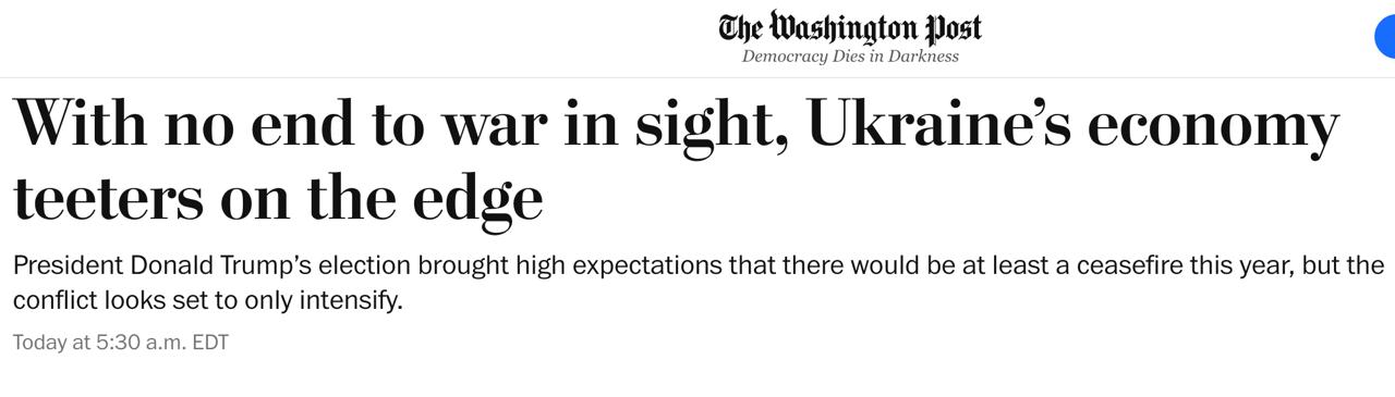 "Прекращение огня было в основе всех экономических прогнозов, и предполагалось, что оно может наступить где-то в середине 2025 года", — заявил газете высокопоставленный чиновник Офиса президента. Теперь, как он выразился, "положительное влияние на экономику" в этом году "больше не рассматривается", хотя надежды на 2026 год все еще есть.