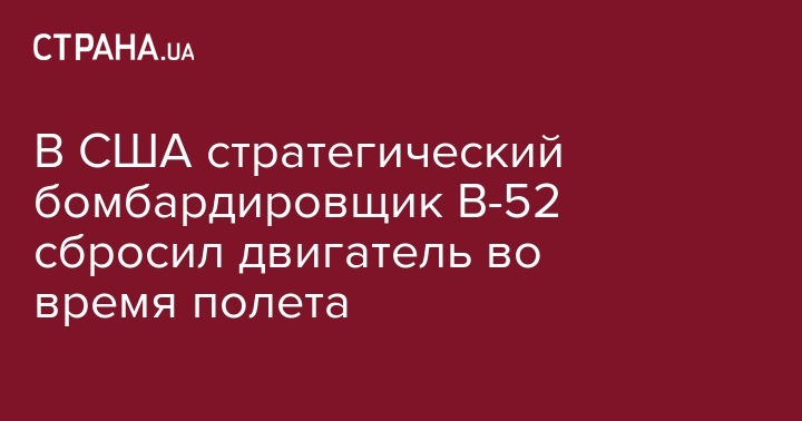 В Северной Дакоте во время тренировочного полета у бомбардировщика B-52 упал двигатель. Об этом сообщают Defense News.