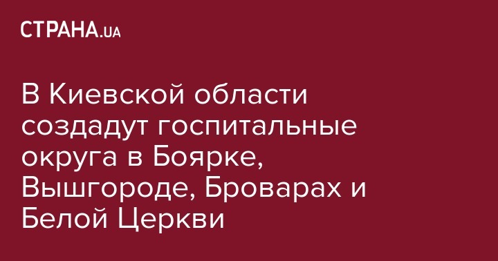 В рамках медреформы в Киевской области создадут четыре госпитальных округа  с центрами в городах Белая Церковь, Боярка, Вышгород и Бровары. Об этом сообщает сайт Киевской облгосадминистрации.