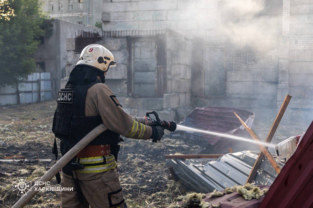 В результате ударов по Салтовскому району города произошли разрушения и пожары в четырехэтажном недействующем здании, стоматполиклинике, а также на крыше жилого дома.