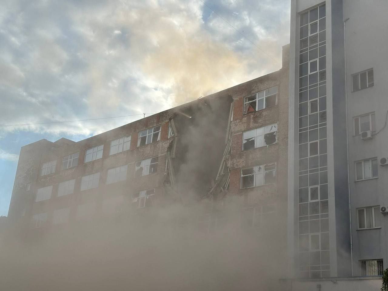 Погиб мужчина. Удар был по центру города, в районе автовокзала. Повреждены торговый центр, административное здание, учебное заведение и СТО.