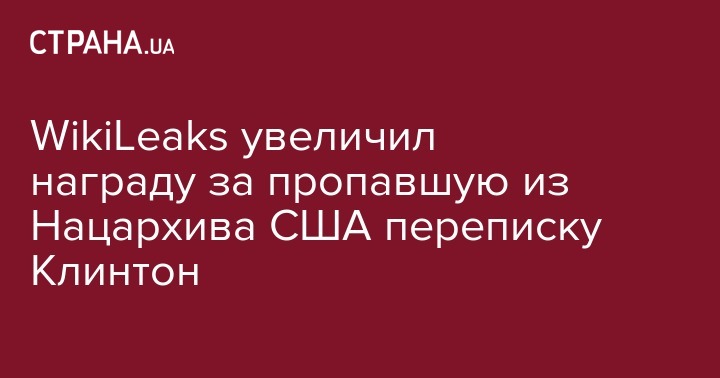 Администрация ресурса WikiLeaks увеличила до $30 тысяч вознаграждение за информацию об исчезнувших данных относительно электронной переписки бывшего кандидата в президенты США Хиллари Клинтон. Об этом говорится в заявлении WikiLeaks на его странице в Twitter.