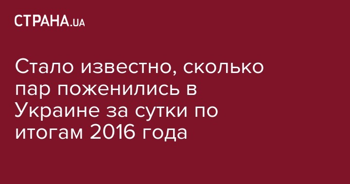 В 2016 году в Украине был запущен проект экспресс-бракосочетаний. Услугой быстрого оформления супружеских отношений за сутки воспользовалось почти 3600 пар - в минувшем году в брак по ускоренной процедуре вступили 3574 пар. Об этом сообщает "24 телеканал".
