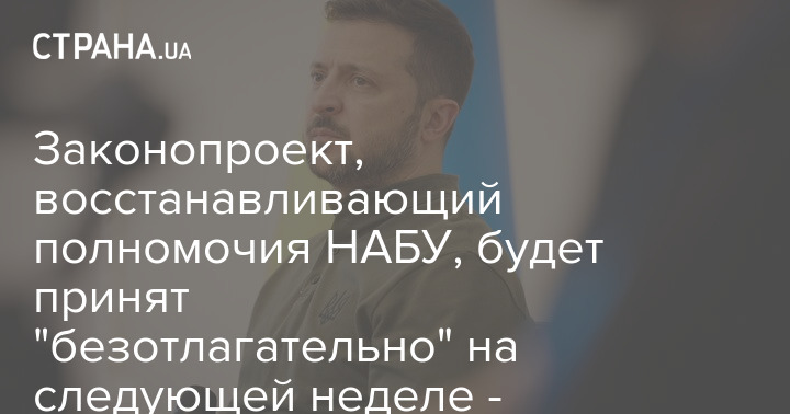 Законопроект, восстанавливающий полномочия НАБУ, будет принят "безотлагательно" на следующей неделе. Об этом заявил президент Украины Владимир Зеленский в разговоре с главой Еврокомиссии Урсулой фон дер Ляйен.