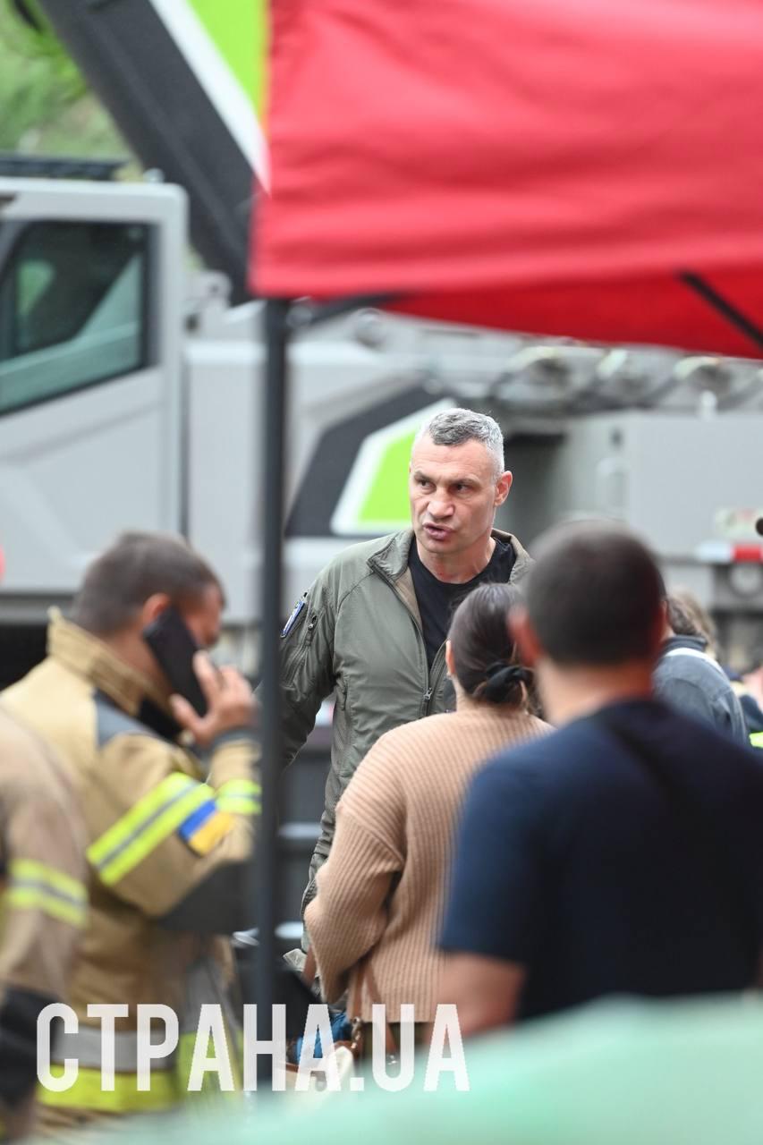 На месте также мэр Кличко. По его словам, только что из-под завалов достали ещё одного пострадавшего, он жив.