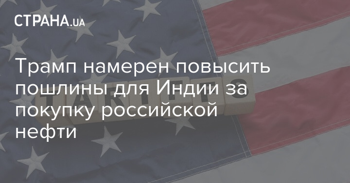 Президент США Дональд Трамп заявил, что повысит пошлины для Индии за покупку российской нефти.