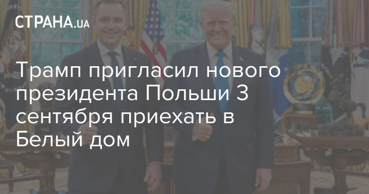 Президент США Дональд Трамп пригласил нового президента Польши Кароля Навроцкого 3 сентября приехать в Белый дом.