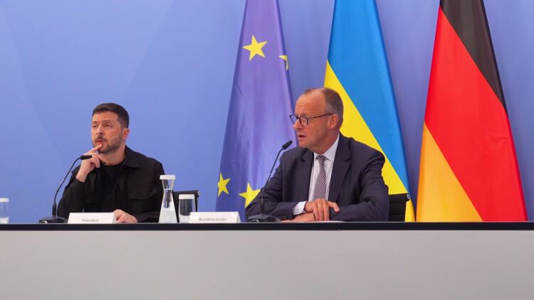 На скриншоте можно заметить, что Владимир Зеленский вышел в эфир вместе с немецким канцлером Фридрихом Мерцем из Берлина. По видеосвязи участвовали во встрече некоторые европейские лидеры (в частности, президент Франции Эмманюэль Макрон, премьер-министры Великобритании, Италии и Польши Кир Стармер, Джорджа Мелони и Дональд Туск), а также президент США Дональд Трамп (его на опубликованных кадрах нет) и вице-президент США Джей Ди Вэнс.