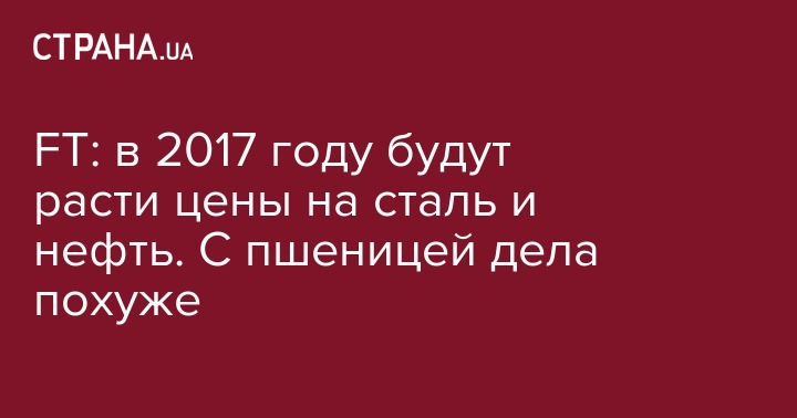 FT: в 2017 году будут расти цены на сталь и нефть. С пшеницей дела похуже